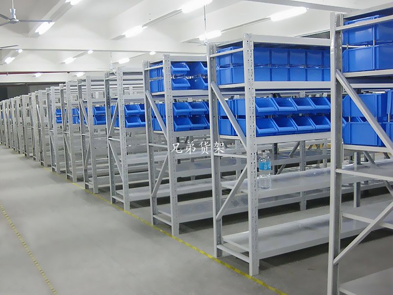 中型货架是个成本较低,利用率大的一款货架,此款货架在电商行业是使用较多,适用于存放轻中型货物,以便于人工存取。